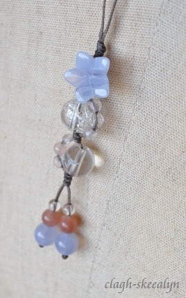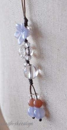 私の作品にはあまり使わないのですが、元のストラップにクラック水晶が入っていたのを見て、