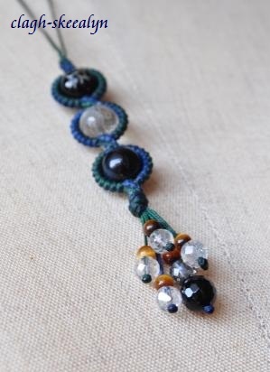 以前に使っていた梵字・龍神・ブルータイガーアイをメインに使い、2色の紐で編んでいきました。