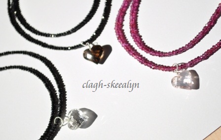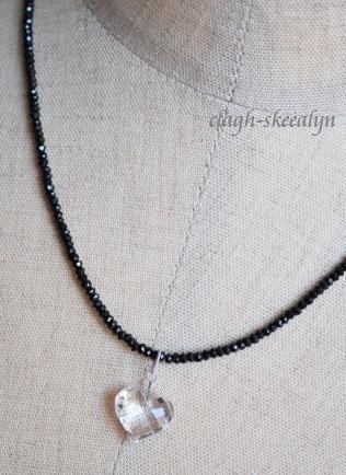 ブラックスピネル×ふっくらハート水晶ネックレス