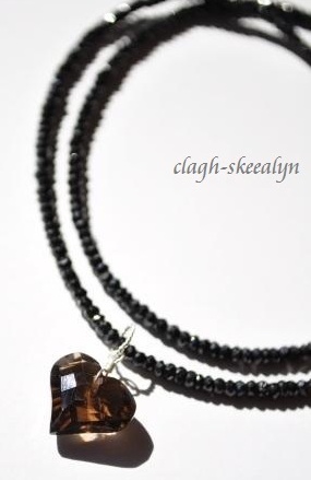 ブラックスピネル×ふっくらハートスモーキークォーツネックレス