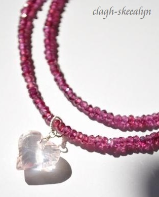 ピンクグロッシュラーガーネット×ふっくらハートローズクォーツネックレス