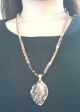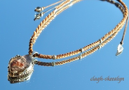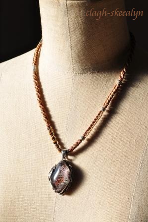 主役のガーデンクォーツを引立たせる為に、紐はアースカラー2色で編んでみました。