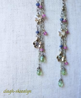 ペリドットの他には、いつもならば一緒に組み合わせないサファイアとルビーを使いました。