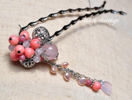 かんざしは、沢山の天然石が重なり合ってキュートなので、創っていても楽しいです