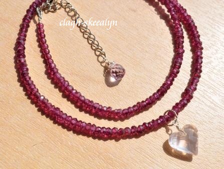 以前こちらで紹介させて頂いた、ピンクグロッシュラーガーネットを使ったネックレスです。