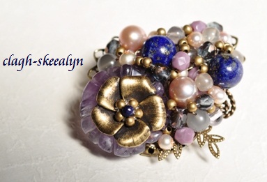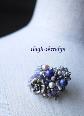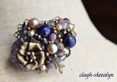 《コスチュームジュエリー》ラピスラズリ・アメジスト・淡水パール・グレームーンストーンのピンブローチ♪
