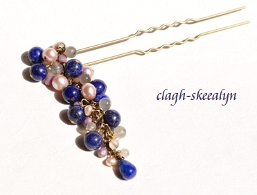 ラピスラズリのかんざし&イヤリング&ヘアゴム&ピンブローチ(アレンジ作品)