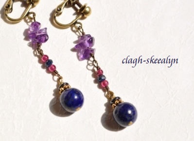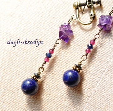 ラピスラズリの個数が少なくなってきたので、次は何を作ろうかな?と思いましたが、普段使い用のイヤリングに決定♪ アメジストのさざれ・サファイア・ガーネット・ヘマタイトを使用しています。