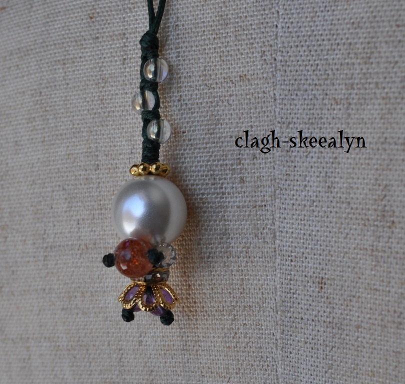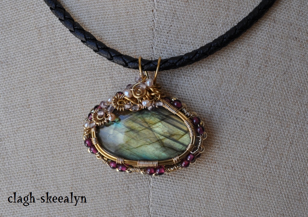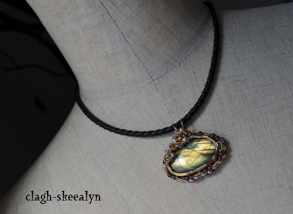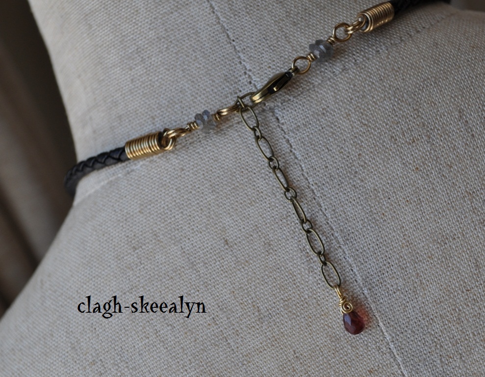 アジャスターにはガーネット、紐と金具の連結部分にはラブラドライトのボタンカットを付けてみました。
