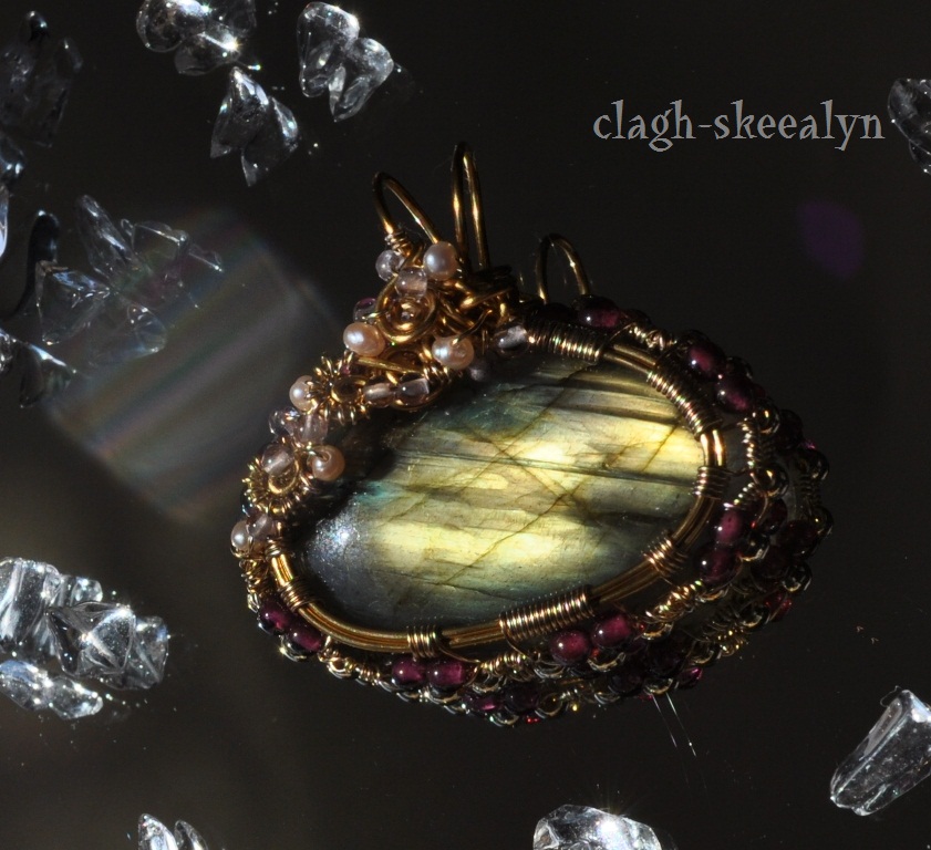 「こちらのワンピースに合うような、ラブラドライトのネックレスを・・」という事で、デザインはお任せ、ラブラドライトはゴールド系のルースをご指定でした♪