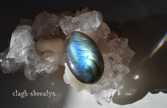 こちら、鉱物的にはラブラドライトの一種ですが、その中でも神秘的で深い閃光を放つ個体で、フィンランドのユレマーで産出される物だけが「スペクトロライト」と呼ばれます。
