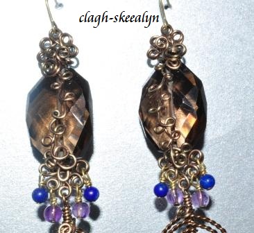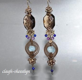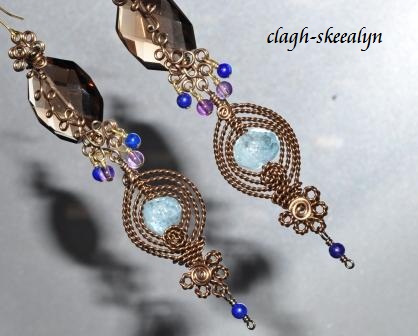 スモーキークォーツ&アクアマリンのワイヤーワークピアス♪