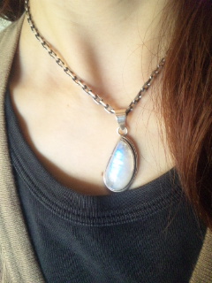 さてさて、アメリカのお土産で頂いて以前紹介した【レインボームーンストーン】のペンダントトップちゃん。
